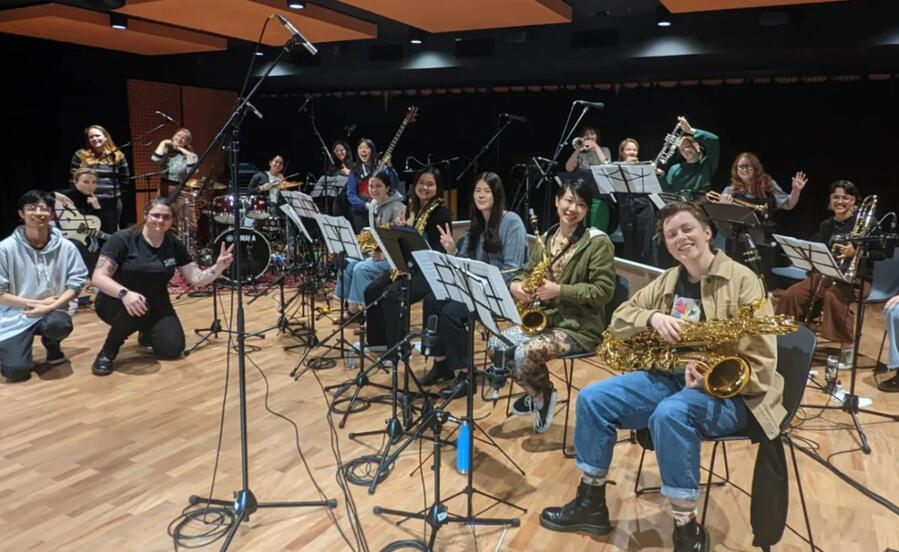 I assumed the pivotal role of lead recording engineer in what stands as my most expansive project to date. In October 2022, at the esteemed Brand X studios, I captured the symphonic harmony this 16-piece jazz orchestra.The intricate challenge of everyone being in the same room compelled me to exercise precise microphone placement techniques, ensuring each instrument's distinct voice resonated with captivating clarity.